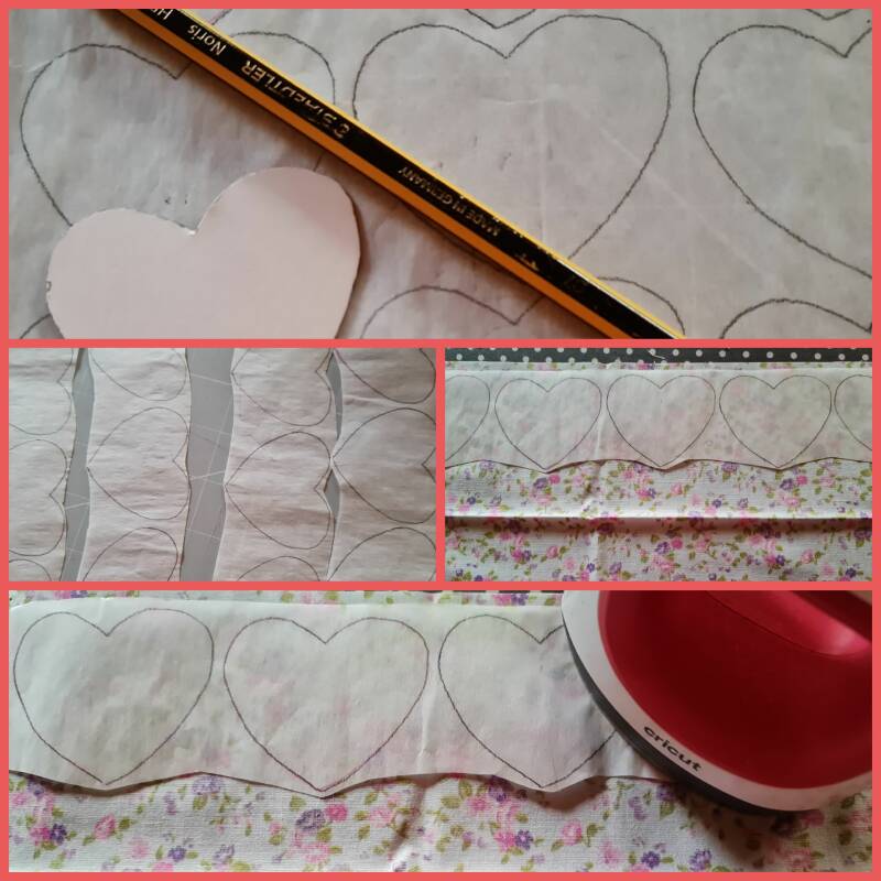 6) Cut out the heart shapes of fused fabrics.